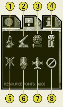 - 5. Разведывательный вертолет Нажмите эту кнопку и выберите, куда отправить это вертолет. Он также включается в ваш отряд. У разведывательных вертолетов нет сенсоров, и для обнаружения противника, им приходится полагаться на визуальный контакт с ним.