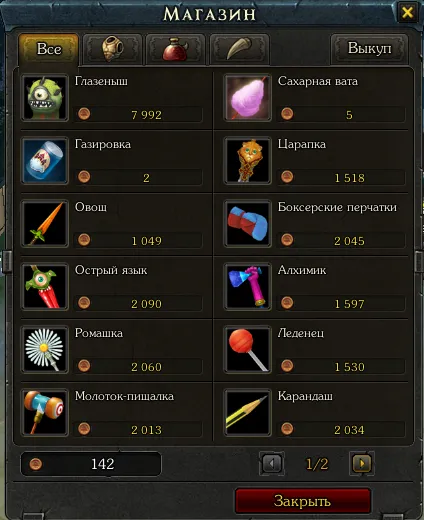 В наличии праздничное оружие с бонусами, действующими во время игрового события, сладкая вата и газировка в качестве угощения и - внимание! - один из двух первых питомцев в мире игры! Другого питомца можно приобрести за Знаки крови в магазине Сражений.