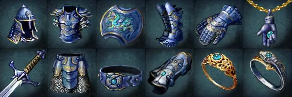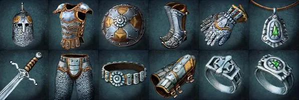 Как полагается, в мире Rise of Heroes есть сеты самых разных видов: обычные, улучшенные, легендарные и т.п. Некоторые из них можно найти лишь изучая обширные земли и воюя с NPC, другие же легко приобретаются за звонкую монету в местной «лавке». Ассортимент такой «лавки» и приведен на скриншоте выше. Тут мы видим большое количество доспехов, щитов, наручей, мечей, топоров и многого другого. Некоторые лоты помечены специальными стикерами, означающими: особый спрос на предмет (стикер «хит»), сезон скидок (стикер «скидка»), а также новые вещи (стикер «новые»).