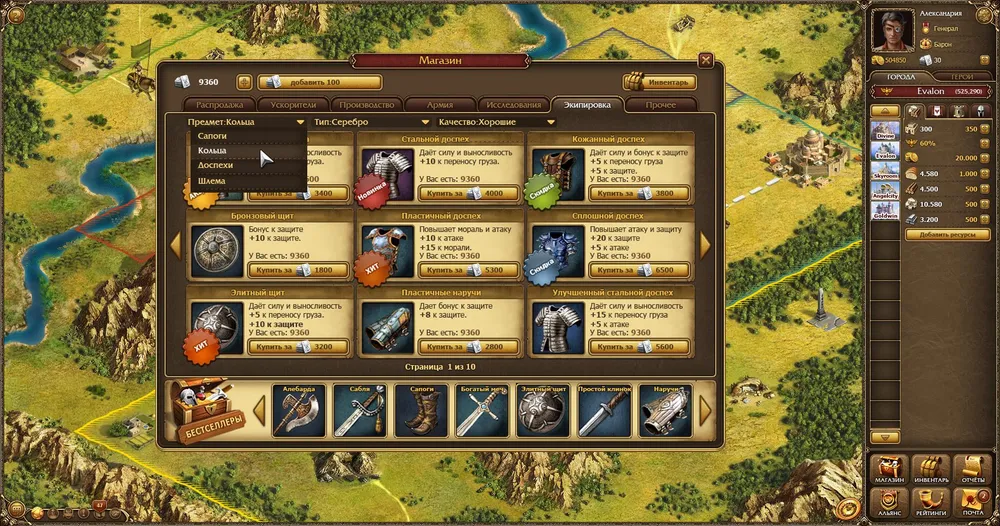 Магазин позволяет приобрести много полезных вещей, как то: бусты для производства, научные достижения для развития государства и даже экипировку для своих героев.