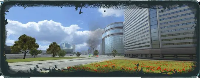 Магистральная эстакада разделяет парковую зону от высотных зданий города, представляя выгодную тактическую позицию для ведения огня. Находясь на открытом пространстве парка, стоит опасаться атак артиллерии, а улицы города отличное место для засад и внезапных ударов со спины.