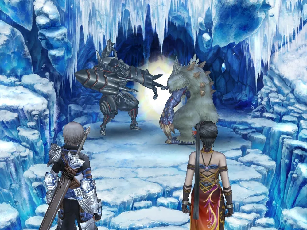 Попав на очередное задание, наша команда в лучших традициях финалки бродит по пустынным локациям, открывает сундуки и размышляет об увиденном, однако пустынность отнюдь не мирная: в традициях той же последней фантазии на игрока нападают невидимые монстры, так называемые случайные стычки. Честно скажу: эта система раздражает неимоверно просто. Вот одно дело в Grandia: видишь всех мобов, хочешь - попытаешься уклониться, хочешь /- вступаешь в схватку. И что самое печальное: бои раздражают не тем, что происходят случайно, а тем, что они не несут ни какого вызова. Уже второй-третий бой проходит по накатанной схеме, и противники дохнут четко и быстро. Однако такая легкость имеет один очень приятный побочный эффект: к битве с боссом игрок расслабляется, а боссы тут не чета обычным монстрам. Эти товарищи могут одним ударом положить всю группу, что оборачивается гейм овером и загрузкой последнего сохранения.
