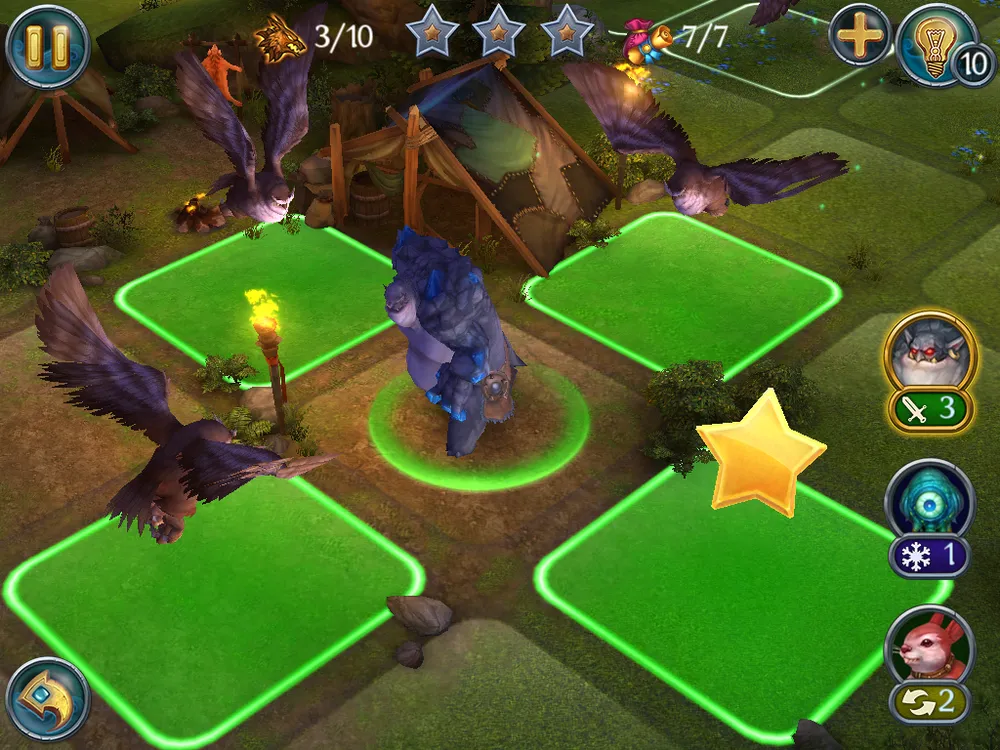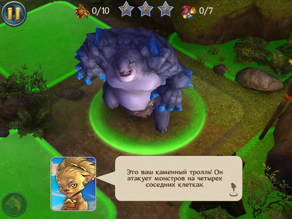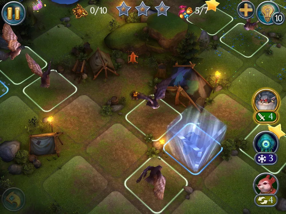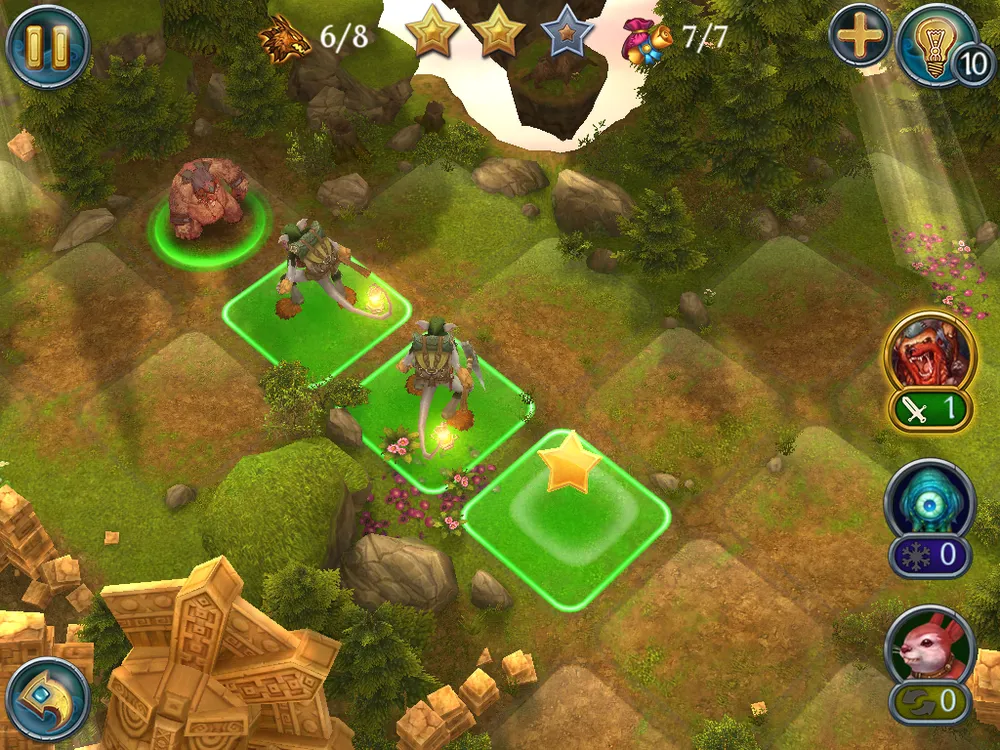 У каждого подконтрольного нам существа есть ограниченное число атак и неограниченная зона передвижения. В каждый текущий отрезок времени мы управляем только одним активным существом, однако всегда можем переключиться на другое, когда потребуется его способности. Каждый монстр в нашем зверинце обладает различными навыками: кто-то умеет замораживать и размораживать, кто-то атаковать на несколько клеток вперед. Из грамотного использования этих умений и строится правильное решение каждой головоломки. Ну а если сучилось ужасное и вы застряли, то на помощь придут подсказки. Только пользоваться ими стоит с умом - они не бесконечны и дополнительные советы будут стоить денег. Как и дополнительные игровые уровни, среди которых ныне костьми новогодний набор и приключения в землях исползанного вдоль и поперек геймерами-ветеранами в Проклятых Землях Гипата.