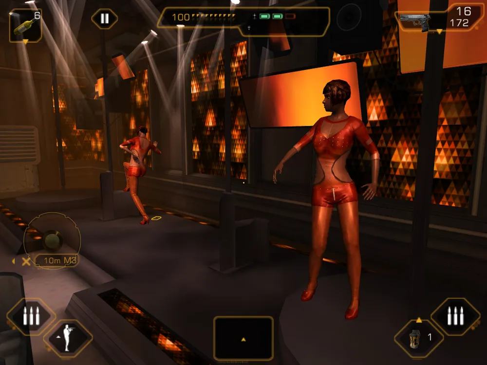 Главная проблема - глухие враги и пофигисты-обыватели. Зона слуха у ботов очень ограничена и очень часто случаются моменты, когда глушишь одного противника, а второй в пяти метрах и ухом не ведет, хотя за его спиной происходит натуральная драка. Тела прятать тоже нет необходимости - в течение нескольких секунд они стильно растворяются в воздухе. Понятно, что это сделано для облегчения жизни железу мобильных устройств, но все же, для ориентированной на стелс игры, подобное упрощение выглядит нелепо. Так же нелепо выглядит и поведение окружающих игрока гражданских, максимум реакции которых на стрельбу и драки вокруг будет взяться за голову и вжаться в стул. Цивилы, которых левел дизайнеры не снабдили посадочными местами могут вроде как даже убежать, но тревоги у прочих врагов это не вызовет. Так вот и ходит Бен по тому же Панама-Сити и вырубает ни в чем не повинных полицейских под безучастными взглядами прохожих.