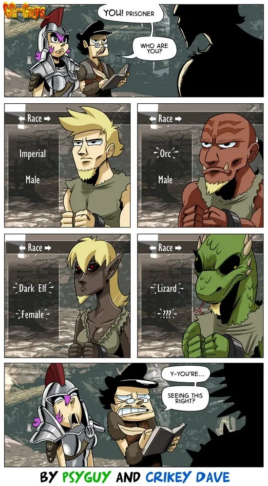 Ну а дальше мы просыпаемся в здании гильдии, в славном городе Эйвен, общаемся с симпатичной девушкой, ухаживавшей за нашим бессознательным телом и выбираем себе лицо. Генератор персонажа, хоть и не сравним с Elder Scrolls или Perfect World, но все же способен на создание весьма интересных типажей. Правда видно, что усы и бороды разработчики решили создать ближе к финалу, уже после того, как нарисовали текстуры и типажи лиц, со щетиной и даже полноценной растительностью на них. И теперь все эти прикольные бородки и пышные усы смотрятся как грим в комедии 30х. Но мне все же удалось создать сурового дядьку и отправить его в мир. Кстати, лицо девушки, после того, как я определился со внешностью героя напомнило героев этого комикса: