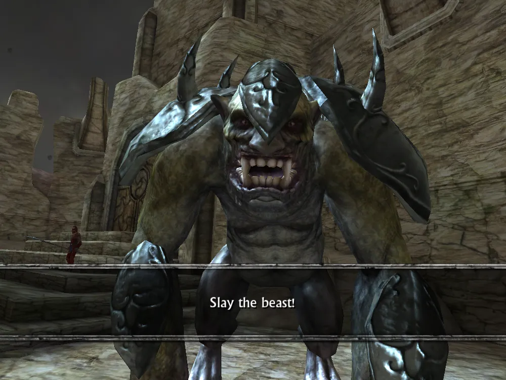 Первое, чем встречает игра своего игрока - пафосный пролог, в котором непонятные воины бегут по серой каменистой местности и убивают темных эльфов. Война поразила своим ядом эти земли, однако, судя по окружению, люди таки потеснили эльфов и готовы зарядить им по самое не балуйся. А управляемый нами солдат, что характерно, с легкостью раскидывает красненьких болванчиков и даже убивает тролля (очень смахивающего на собрата из трилогии Властелин Колец от Питера Джексона). А мертвые тушки красиво валятся на землю, влекомые весьма приятной rag-doll физикой. К сожалению, весь пафосный пролог где-то после минуты скатывается на уровень любительского кино, у создателей которого не хватило бюджета на массовку. Заключительный ролик пролога выдает совсем уж унылую картину куцых разрушений некоей Башни и потери сознания нашим героем. Последние кадры показывают его руку, из последних сил пытающуюся найти выпавший из нее меч...