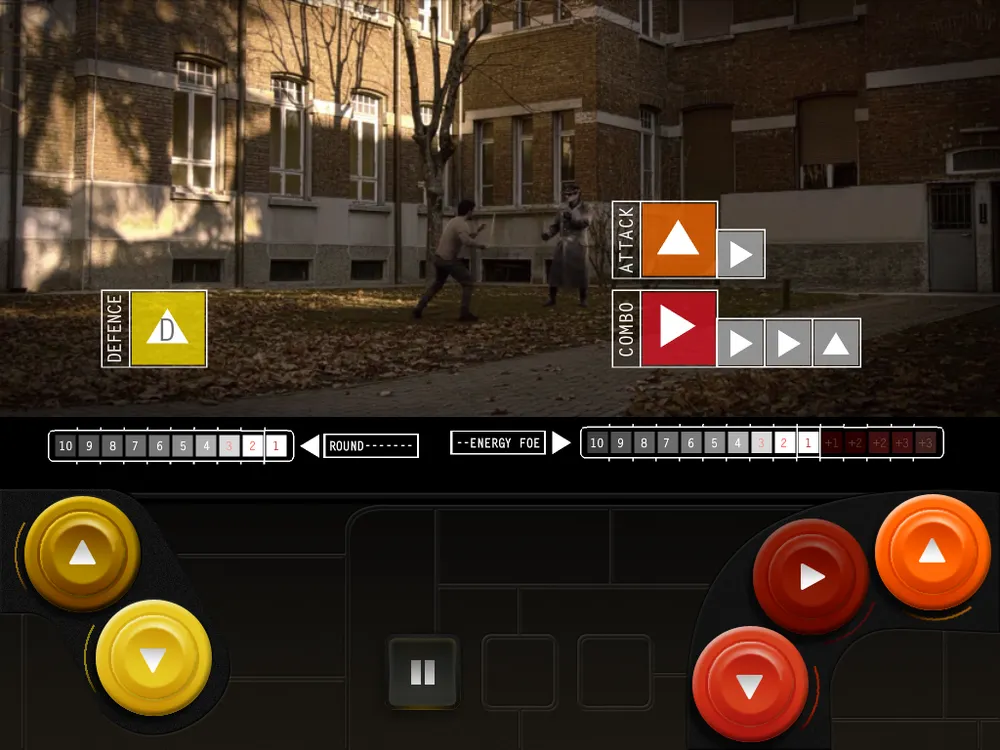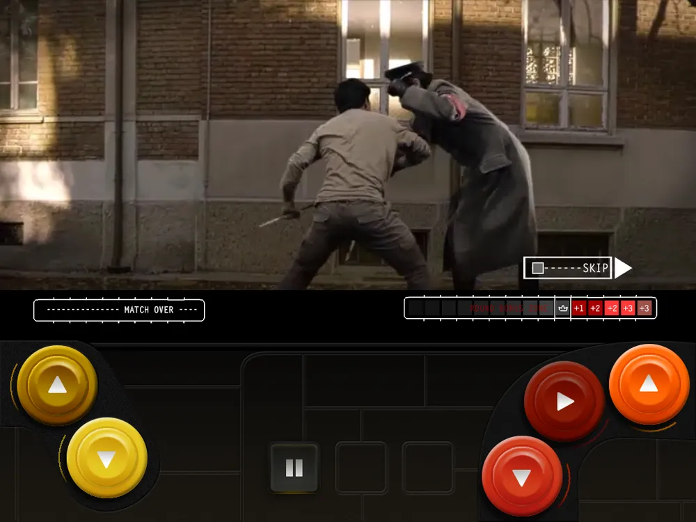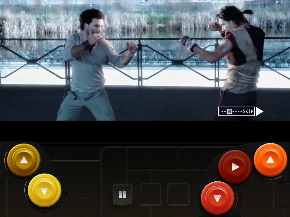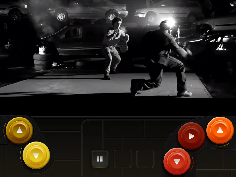 Теперь, когда виден скелет игры, будет проще рассказать о её сути. А она такова: наш герой поочередно борется с противниками, выполняя не самые хитрые приемы в драках, и постепенно побеждает всех своих врагов. У каждого из них свой стиль боя, своя арена и, естественно, внешность. Весь поединок проходит по механике QTE. Играли в Heavy Rain или Fahrenheit? Помните моменты во время прохождения, когда надо было быстро нажимать на определенные клавиши? В Stay Dead то же самое. Огромный плюс в копилку разработчиков падает аж за три разных схемы управления (а в обзоре речь иде о версии для iOS), каждая из которых весьма существенно меняет игровой процесс. Выбрали первую - на экране появляются точки, на которые нужно тапнуть (задержать палец, долбить с высокой скоростью и тому подобное), а игровое видео идет в центре экрана. Вторую - видео сдвигается выше и внизу экрана появляются большие кнопки. Ну а выбравшим третью вместо больших кнопок рисуется красивый файтинговый геймпад. Честно говоря, самый удобный вариант - первый. Второй и третий - для желающих усложнить себе жизнь. Этому способствуют и уровни сложности, самый сложный из которых открывается после полного прохождения.