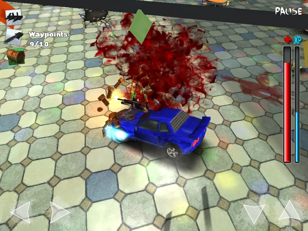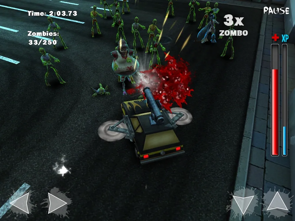 В городе вас ждут толпы, иногда даже орды различных мертвяков. Видов зомби много, каждый вид обладает своими способностями и внешним видом. Есть среди них и мои любимцы: большие, зеленые и медлительные зомби, которые расхреначиваются в скользкие кровь-кишки. Любимые они потому, что малейший поворот колес машины в этой луже приводит к заносу, но если делать это умело и своевременно, то можно раз мазать по бортам и дороге кучу мертвечины и заработать много-много болтов, служащих в игре валютой. Хотя, конечно, в дрифт можно войти и самостоятельно, и не менее эффективно. Как я уже говорил, помимо самой машины и колюще-режущего обвеса есть в игре и огнестрельное оружие. Видов его достаточно, начиная банальным пулеметом на капоте, заканчивая огромной ракетной установкой на крыше. У каждой машины есть несколько слотов для установки оборудования, от которых во многом будет зависеть ваш стиль игры. Да и сам автопарк весьма внушителен... Но вернемся к геноциду зомбаков. В зависимости от задания миссии, от игрока требуется гонять по чекпоинтам на время, уничтожать группы или отдельных зомби, убивать не маленьких боссов и тому подобное. На каждом задании доступен весь уровень и можно ездить куда захочется, а если нет ограничения по времени, то можно и просто наматывать кишечники и позвоночники на колеса, зарабатывая болты и добывая оборудование. К сожалению, в игре не большого открытого города, который был бы здесь очень кстати, но это простительно, ведь и в таком виде игра нравится, она динамична и удобна, иногда сложна, а иногда и расслабляюще легка.