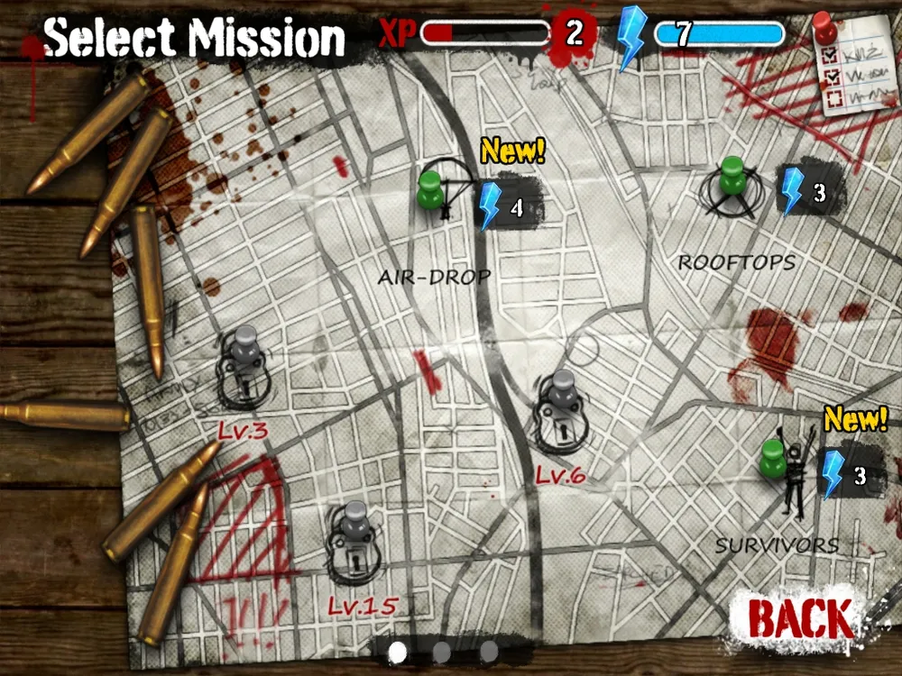 Миссии выбираем на глобальной карте и отправляется в бой. Типов несколько, но все они в принципе стандарты для жанра: спасти людей, убить зомби, разведать местность. Иногда появляется необходимость отправиться и на усложненное задание, за выполнение которого полагается щедрая награда. Оказавшись в бою, даже не очень опытный боец быстро разбирается что к чему, благодаря весьма удобному управлению и адекватной системе автоприцеливания. На миссию с собой мы можем брать только один вид огнестрельного оружия и один вид оружия ближнего боя, так что патроны беречь придется, особенно на сложных заданиях. Так же не стоит брезговать обыском мусорных баков или запертых дверей - а вдруг та денежки? Хотя, иногда вместо денег там оказываются и другие сюрпризы, чаще всего кусачие. Когда миссия закончена, мы снова оказываемся в штабе. Кстати, после спасения выживших, не стоит забывать об их эвакуации. А чем больше за раз мы доставим в безопасную зону - тем больше будет гонорар.