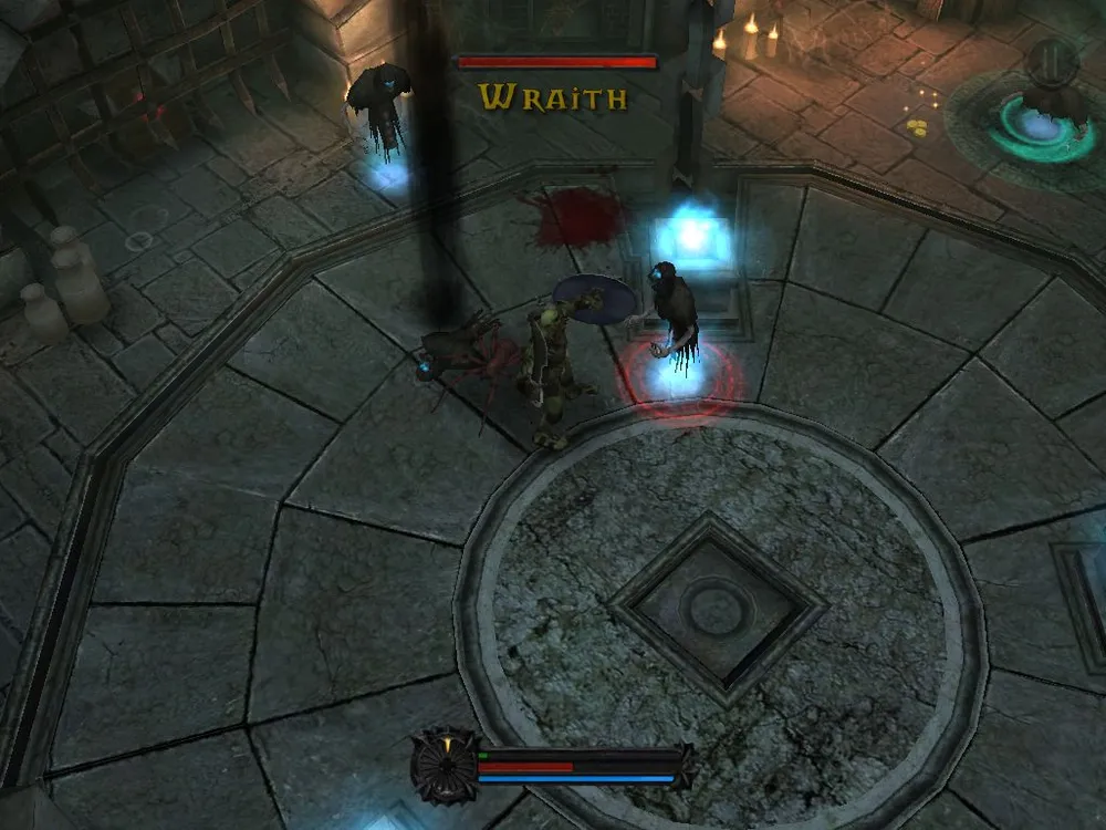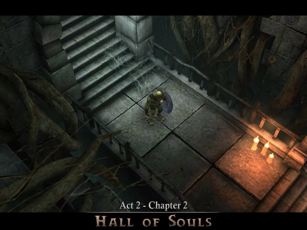 С этого момента и начинается дьябла. Продираемся по локациям (все передвижения нашего могучего вождя совершаются старым добрым point'n'click) выкашивая сотни различных врагов, среди которых зомби, скелеты, пауки, мерзкие гоблины и прочие интересные существа. Игра выполнена в сеттинге темного фентези, да еще и идет от лица пусть и благородных, но все же орков, так что приготовьтесь к весьма мрачной атмосфере. Ролевая система не слишком оригинальна, однако в ней присутствуют свои интересные элементы. Для начала навыки жадность и возмездие. Первый отвечает за добываемое в боях золото, а второй за скорость регенерации маны и ее количество. Мана используется, как не сложно догадаться, для применения различных навыков. Дабы какой-либо из них задействовать нужно изобразить пальцем хитрый жест, отвечающий за прикрепленный к нему скилл. Надо сказать, что я бы был не прочь выбрать старые добрые наэкранные кнопки, так как жесты сложнее двойного тапа или линии распознаются игрой далеко не каждый раз, а в пылу боя это очень напрягает, ведь противники у нас не слабые. Сложности добавляет и хитрая система брони, которая не является постоянной величиной, а служит скорее дополнительным здоровьем, которое весьма быстро истощается и не очень быстро восстанавливается.
