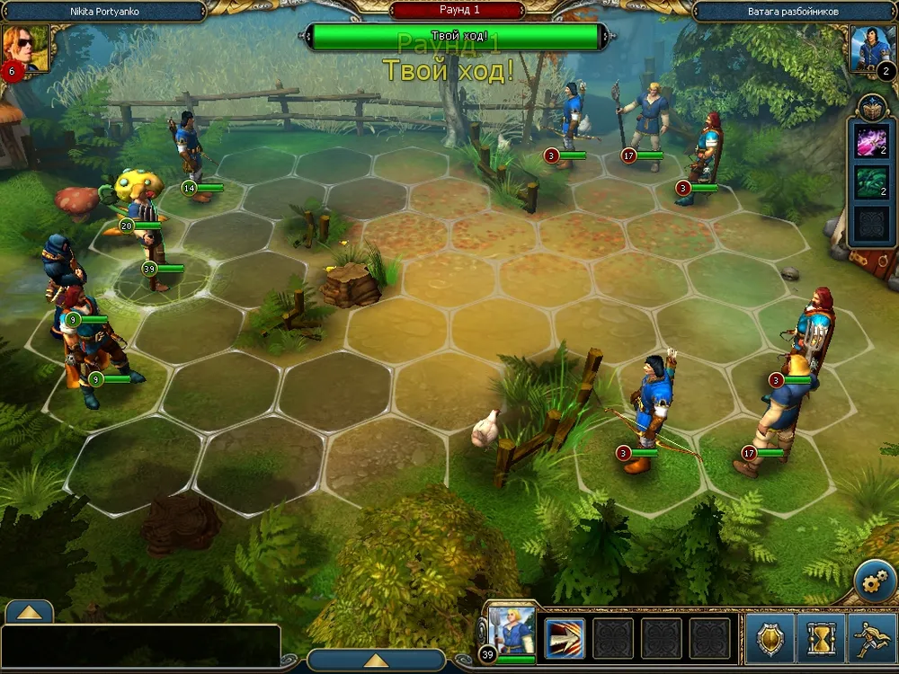 Теперь, наконец, подробней рассмотрим боевую часть. Хотя рассматривать тут почти нечего и она - то немного, что существенно отличает Legions от прочих недолго в соцсетях. Отличает она преимущественно тем, что какую бы крутую армию вы не собрали, без умелого командования она все равно долго не протянет. Из этого следует, что влияние игрока на исход битв куда существенней, чем в играх коллег по цеху и это очень радует. Я не думаю, что среди моих читателей найдутся люди, хотя бы мельком не сталкивавшиеся с оригиналом или хотя бы третьими героями, но на всякий случай вкратце опишу бой. У нас есть поле, поделенное на гексы, две сражающиеся стороны, отряды, у которых есть показатели здоровья отдельного существа и численность всего отряда. У существ есть свои особые способности, различные виды атак и прочее. Герой же, помимо тактического руководства, может огреть не приятельскую армию и парочкой заклинаний. Ну а весь бой проходит в походовом режиме, как и в оригинальной игре и мало чем отличаются от оригинала, разве что конечным количеством заклинаний у героя.