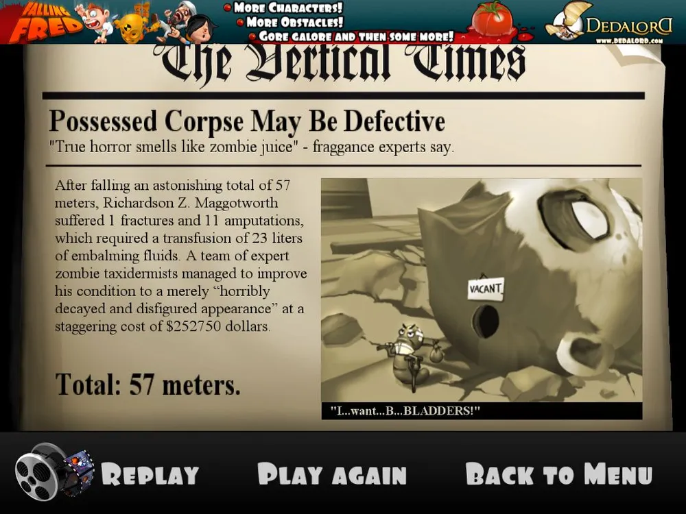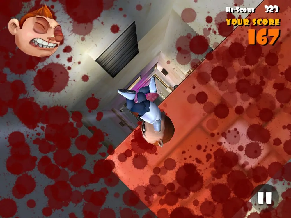А увлекательности способствуют два очень важных аспекта игры: стиль и кровищща. За стиль отвечают местные персонажи, коих в игре 6, включая самого Фреда. Часть выдаётся игроку бесплатно, вместе с самой игрой (которая так же не жадная), а остальных можно докупить. Все они уникальны и все имеют свой финальный экран, но моим любимчиком сразу стал Бен Ладен: