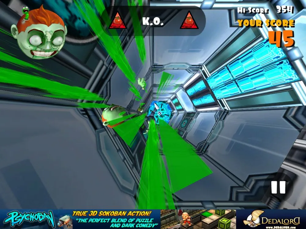 Единственное к чему можно придраться - управление. Два слайдера: движение и стрельба и просто движение. Все бы ничего, но в игре есть счетчик патронов, и постоянно стрелять очередями не выйдет, по этому надо чередовать слайдеры. А это не всегда удобно. Но на этом минусы заканчиваются. Кстати, особо "социализированным" людям понравится возможность твитнуть и фейсбукнуть результаты последней игры.