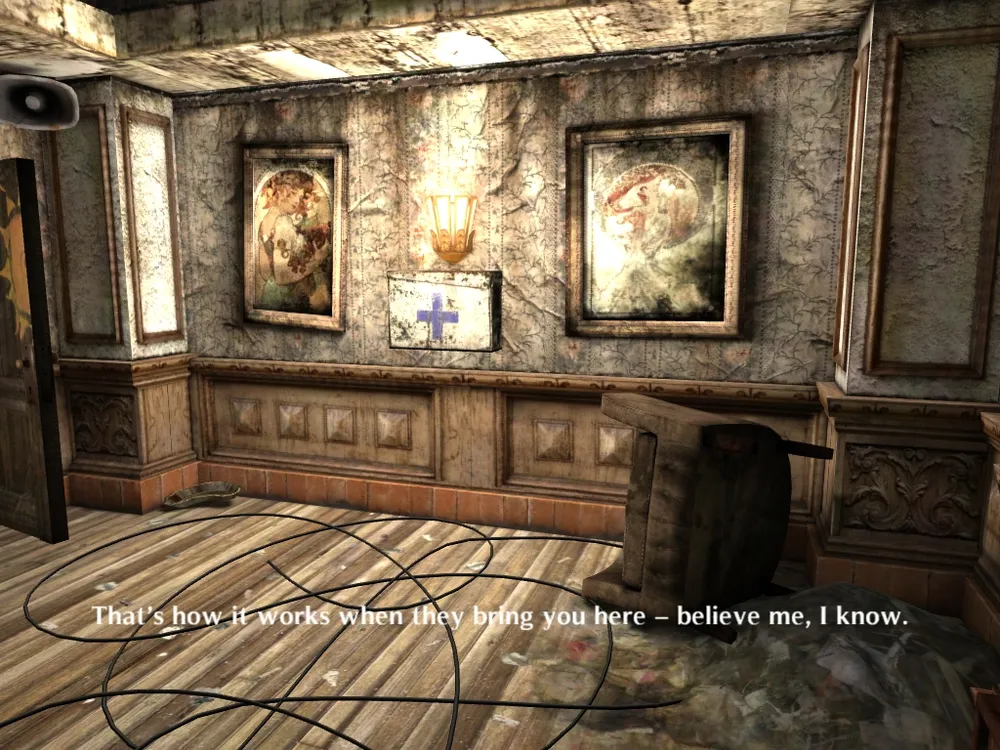 В перемещении и исследовании изменений больше. Игрок ходит по мрачным коридорам дурдома, исследует комнаты, закоулки, находит обрывки информации об этом странном месте. И Слушает превосходно озвученные послания от таинственного старика в инвалидной коляске.