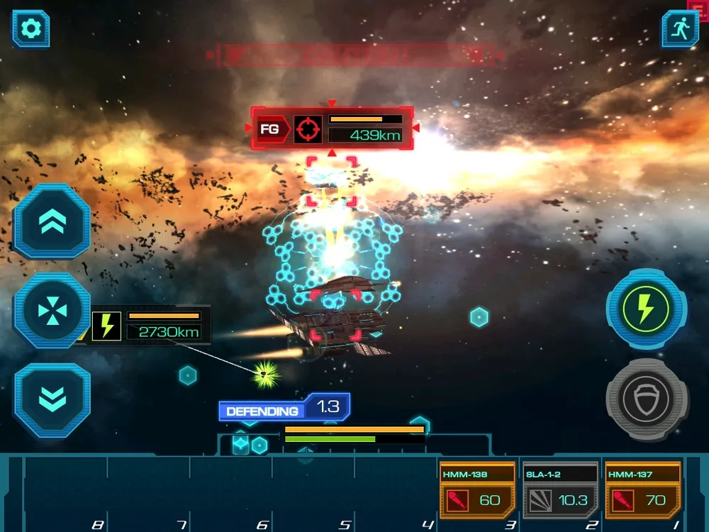 И когда энергия заканчивается - корабль остается беззащитным на некоторое время для перезарядки. Щит, в отличие от обычной его роли вспомогательного оборудования, играет в бою чуть ли не важнейшую роль: враги кусаются больно и метко. Некоторые могут уничтожить ваш корабль одним залпом.