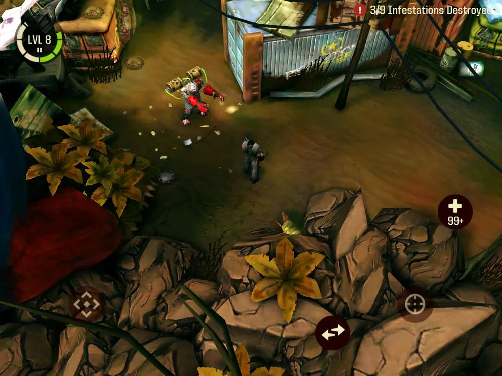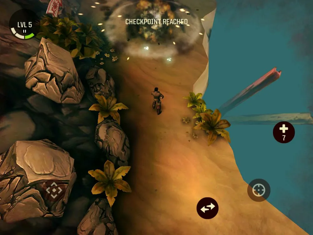 Кстати об управлении. На ящике это был дуалстик шутер, с хитрой и не очень удобной системой стрельбы: она велась не постоянно, а на каждый "дерг" левым стиком вылетала одна ракета, так что зажимать стик с криком "сдохни, @£#%!" не получалось и необходимо было как сумасшедшему кротчить его. На тачскрине данная функция реализована куда удобнее: с помощью росчерков по экрану. Куда черканули - туда и полетит ракета.