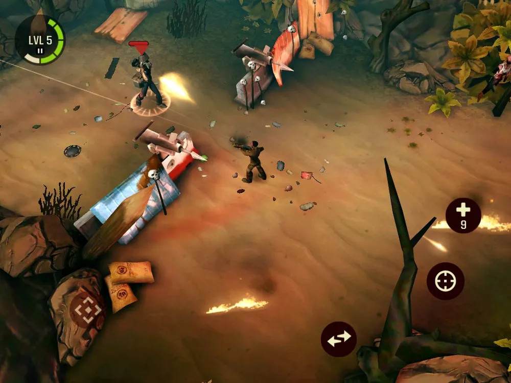 Ну почти - они все же по параболе летают, ракеты же, а не пули. С другой стороны экрана находится зона, отвечающая за движение. И вот тут кроется главная подстава с управлением: иногда в пылу боя забываешь про эти зоны и лезешь стрелять там где надо управлять. Ну и чисто субъективно: правше куда удобней стрелять вправо, нежели в любую другую сторону.