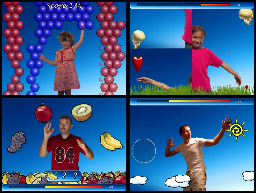 Это, пожалуй самая удачная моя находка. В игре представлено 11 игр для вебкамеры, где нужно использовать свои руки, ноги, и голову, чтобы управлять действием игры. Программа реагирует на любые движения, но для полных ощущений от игры потребуется веб-камера как минимум… со средней частотой обновления кадров. Так же эта игра очень привередлива по отношению к фону который находится за вашей спиной, а так же наотрез отказывается работать без естественного дневного света.
