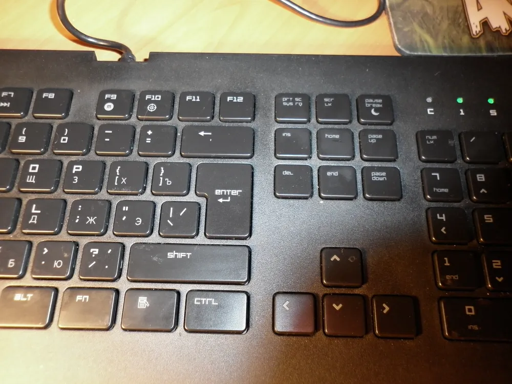 Проблему вызывают и навыки слепой печати из-за дополнительных клавиш возле кнопки ENTER. То "\" вместо "э", то "э" вместо ENTER. Само собой, рано или поздно пройдёт, но глухое рычание, идущее из тех дремучих времён, когда хищники вынуждены были чистить колёсико мыши, чтобы разделывать травоядных, время от времени пробуждается.