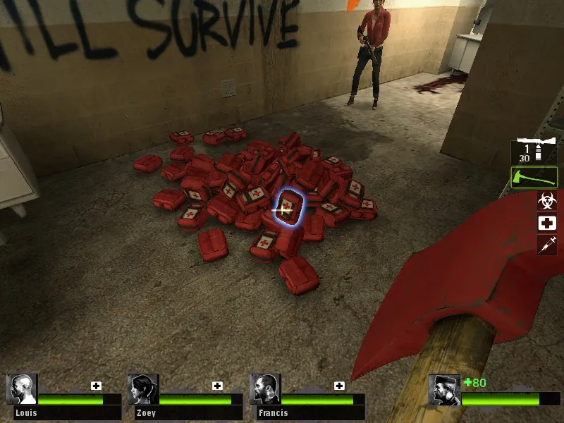 Игрой с частичной регенерацией здоровья была игра, выпущенная в 2005 году для платформ Microsoft Windows (разработана Monolith Productions), Xbox 360 и PlayStation 3 (разработаны Day 1 Studios) в жанре FPS с элементами Survival horror - F.E.A.R. First Encounter Assault Recon. В этой игре здоровье автоматически восстанавливалось лишь до отметки в 25%, чтобы восстановить оставшуюся часть здоровья, необходимо было использовать аптечки.