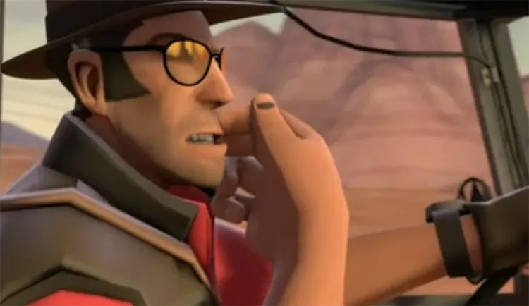 На пальце Снайпера есть синяк. Возможно, он получил его из-за отдачи снайперской винтовки.