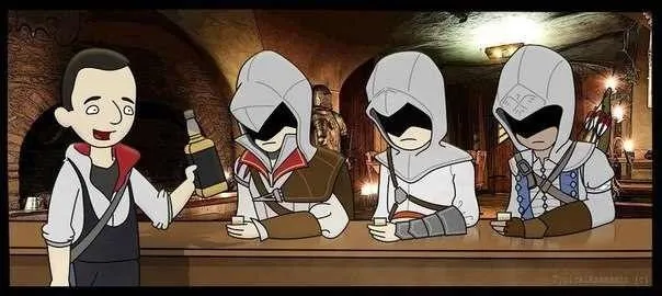 Всем привет! Пусть и прошлая подборка так и не получила золотой рамки, сегодня я все же решил продолжить искать все новые и новые картинки и комиксы, пусть это и немного трудновато. Картинок и комиксов, вместе взятых я насчитал 49. Для удобства, я "впихнул" картинки в рамку и отделил каждую линией.. Также важным нововведением является разделение картинок по темам: например картинки по серии игр Assassins Creed или тема "Cosplay". Желаю приятного просмотра!