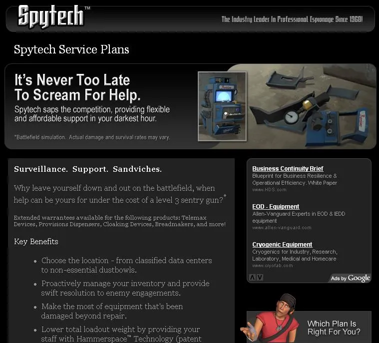 Team Fortress 2 - RED: Reliable Excavation Demolition "RED обеспечивает интеллектуальный подход ко всем операциям разрушения... Абсолютно ничто иное не продолжается здесь."