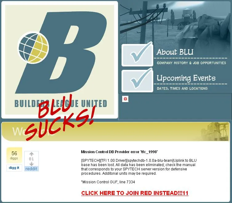 Служащие BLU были потрясены этим утром, когда они заметили, что их корпоративный вебсайт был стерт известными конкурентами RED. Очень нетипичный из часто ожесточаемой КРАСНОТЫ, некоторые говорят, что это представляет только фракцию реального повреждения, с которым имели дело в течение нападения.