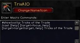 Создаёт 3 макроса. 2 кастуют трюк на определённую цель.