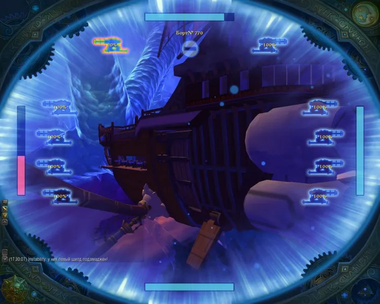 Ну и, конечно, отдельных слов заслуживает наша "святая святых" - интерфейсы для астральных кораблей и астрального боя. Главный из них - интерфейс навигатора, который мы в шутку называем "оком Саурона". Это полноэкранный магический "глаз", который как на ладони показывает окружающее корабль пространство, а также может служить своего рода подзорной трубой для наблюдения за вражескими кораблями.