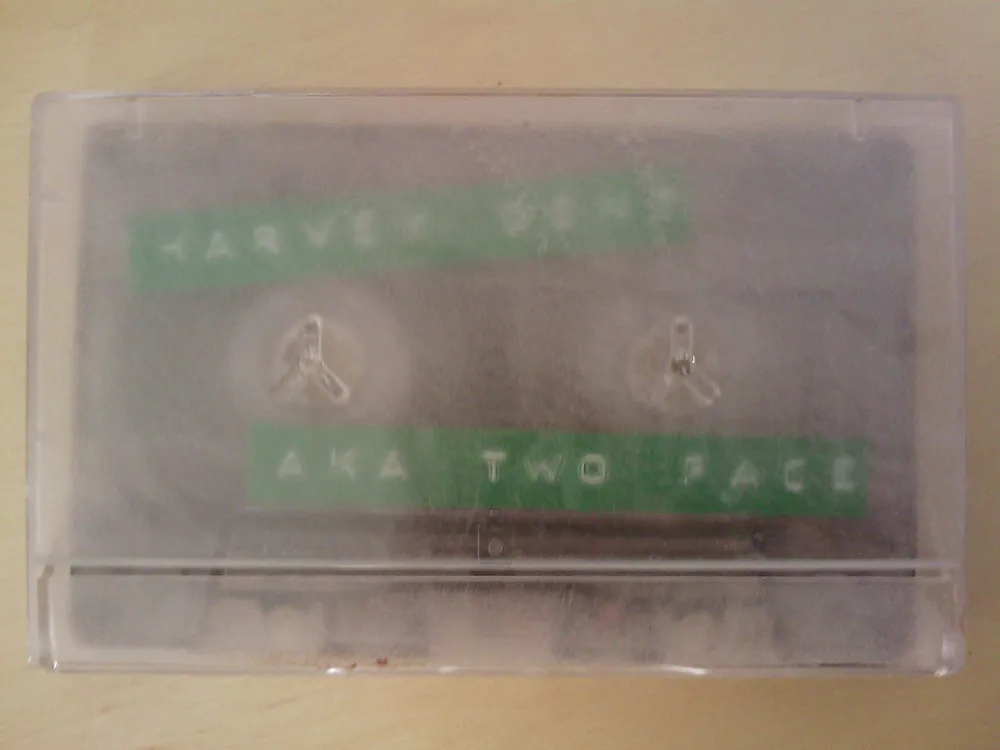 Итак, возвращаемся к теме кассет. Выяснилось, что нашлась ещё одна из всех 25, которые были оставлены разработчиками на выставке. Кстати, по поводу столь большого количества я бы не стал радоваться, т.к. не факт, что абсолютно все из этих кассет уникальные (тобишь на каждой интервью с разным персонажем). А опираюсь я на это потому, что одному из посетителей выставки трёх китов удалось урвать свою кассетку. К слову, на этот раз повезло порталу Siliconera, т.к. им удалось раздобыть аудиозапись, на которой Хьюго Стрэйндж берёт интервью допрашивает Двуликого. Запись и перевод текста вы можете увидеть чуть ниже. А пока хочу показать вам фотографии самой кассеты. Ах да, чуть не забыл, за этот классный перевод благодарим юзера Surt.