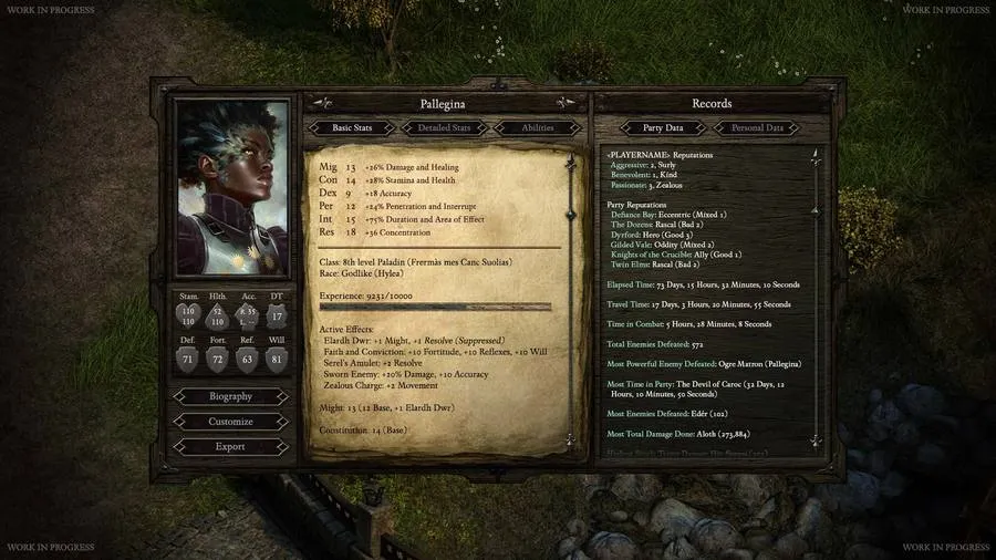 Тот, над которым я сейчас работаю, Паллегина. Мы предпочитаем создавать компаньонов на относительно поздних этапах развития разработки, так как это даёт нам возможность разместить в игре объекты, на которые они будут реагировать. Этот персонаж нравится мне потому, что с ним связана интересная сюжетная линия. Действие игры происходит в Дирвуде, месте, созданном под сильным влиянием европейской культуры и напоминающим Земли Долин из Забытых Королевств. Оно подобно континентальной Европе и полно обычных мужчин и женщин, спешащих по своим делам. Одна из соседних стран, Вэйлианская Республика, колонизировала эти территории. Паллегина поклялась защищать родные земли, но ей кажется, что есть более эффективные способы, чем ей говорили.
