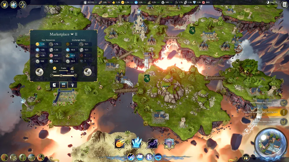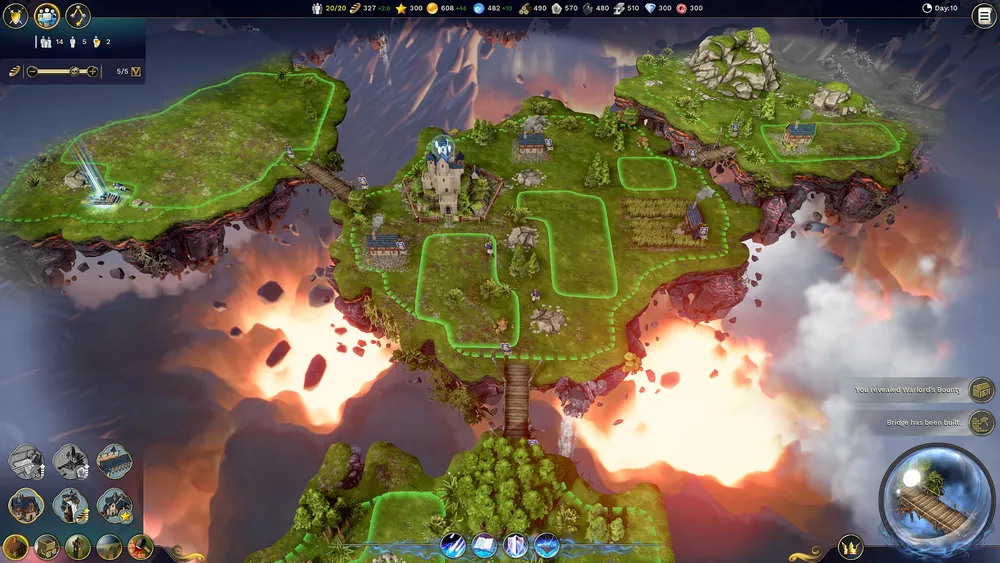 Благодаря непрямому управлению в игре, игроки могут полностью сосредоточиться на расширении, развитии империи, захвате новых осколков. Построение зданий осуществляется на поверхности осколков. Для присоединения другого осколка необходимо возводить мосты между плавающими в воздухе островами. Острова, находящиеся далеко, необходимо будет передвигать, применяя могучие заклинания.