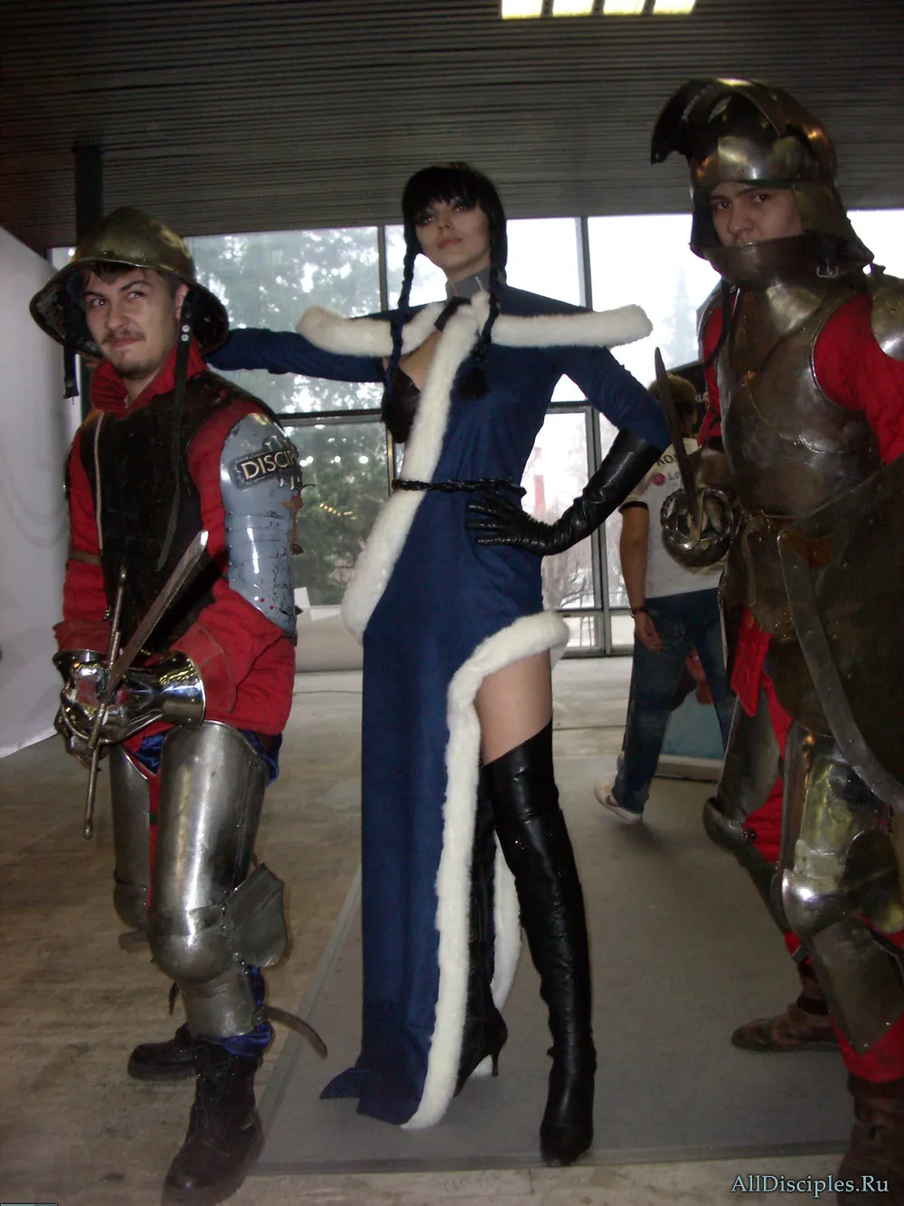 Анна в обществе профессиональных рыцарей-актеров у стенда Disciples