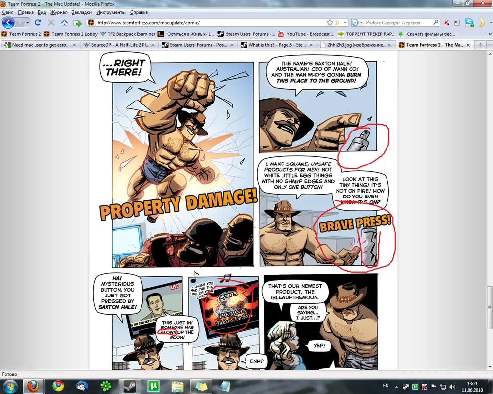 Робин Уолкер: Одним из позитивных моментов подхода "развлечения, как услуга" была возможность испытывать различные вещи в TF2, прежде чем заниматься ими. И поэтому мы можем попробовать многое, и потом наблюдать за реакцией сообщества. В некоторых случаях, например с комиксами про Сакстона Хейла, мы не планировали их делать вообще, и когда на них была хорошая реакция, мы все равно не стали думать о том, чтобы бросить разработку видеоигр, и заняться комиксами. В других случаях, реакция на вещи заставила нас работать над ними. Сакстон Хейл сам по себе очень хороший пример. Вначале у него была маленькая роль, но реакция на него была столь позитивной, что мы продолжали развивать его тему во всех последующих обновлениях.