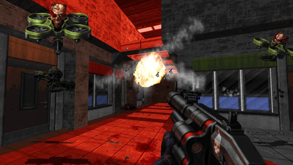 И… Собственно, это игра на Build – что ещё сказать? Процесс ничем не отличается от старых Duke Nukem 3D и Shadow Warrior. Графику конечно подтянули, увеличив разрешение экрана и добавив воксельные спецэффекты. Оружие и враги новые, но в основном тоже лишь внешне. Только добавили «хэдшоты» — раньше урон был противникам одинаковый, что в голову, что в пятку. И предметов, которые можно разломать, попадается на пути гораздо больше, чем двадцать лет назад.