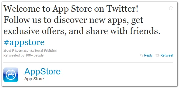 Крупная интернациональная компания, заботящаяся о своём имидже, не имеет права игнорировать социальные сети и уникальные возможности, ими предоставляемые. Теперь в твиттере появился и App Store. В качестве информационного канала.
