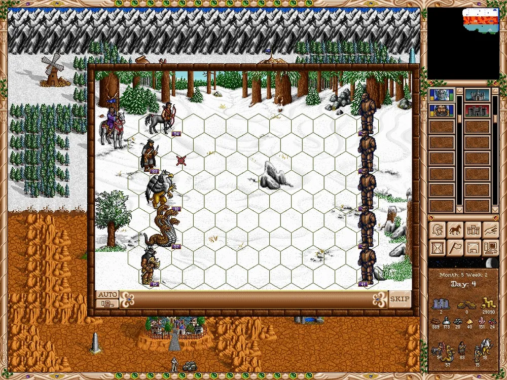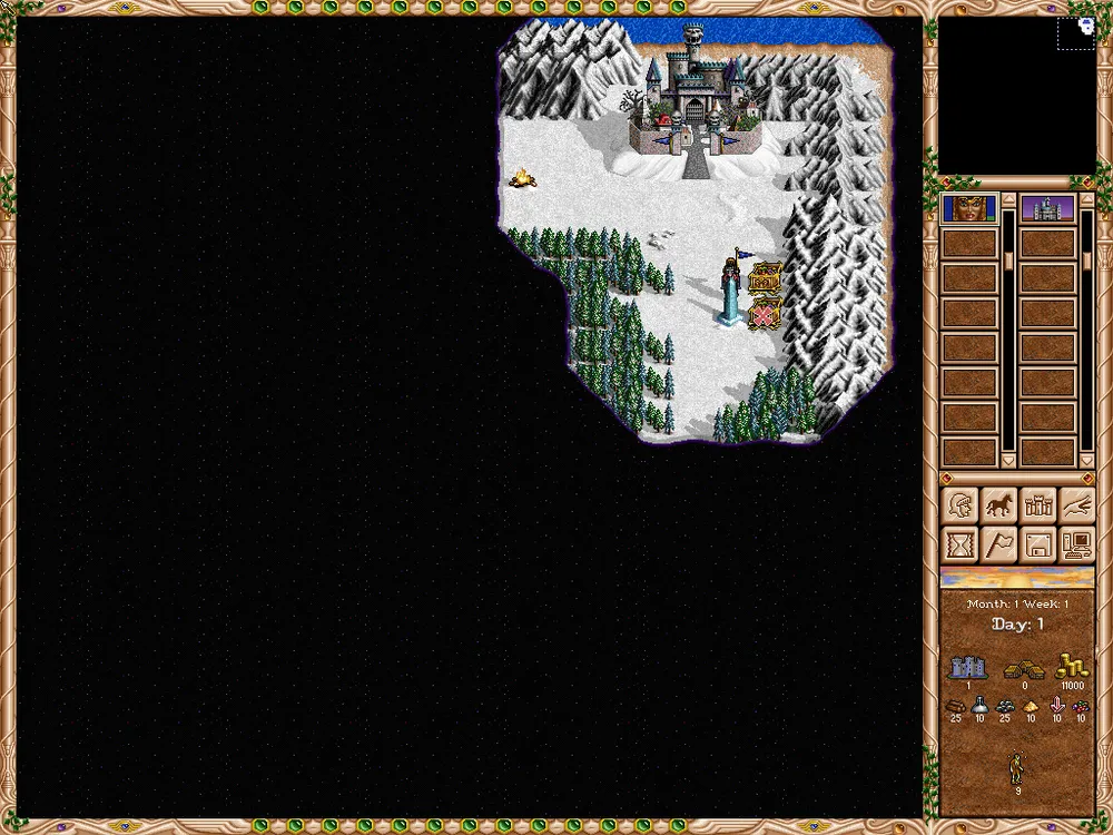 Графически же игра шикарна, даже учитывая её возраст. Карта и все что вне боя и города - работает на полный экран. Вся анимация и прочее - все на месте. Когда же мы заходим в город или начинаем бой - появляется "окошко". Видимо это сделано для того, что бы не перерисовывать и не растягивать интерфейс под разрешение. Надо сказать изящное решение. К сожалению в движке есть и ещё один небольшой недочет: местами кажется что игра идет не в полной скорости. Хотя, возможно, это мне показалось, т.к. я во вторую часть почти и не играл.