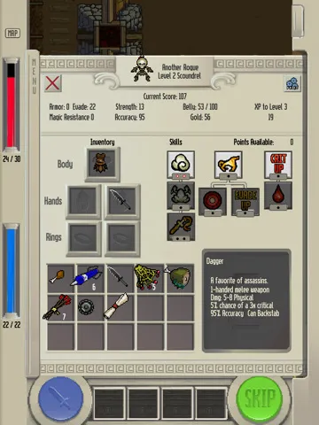 Вот по своей сути игра - чистый, не замутнённый сложной ролевой системой "рогалик". В принципе дьябла, только пошаговая. Однако в этой простоте есть то, что очаровывает игрока сразу: приключение. Да-да, оно родимое. Играя сразу же получаешь болезнь "ну ещё одну комнату и спать".