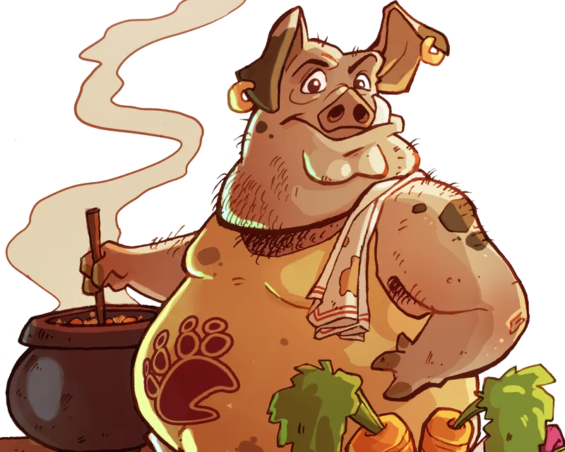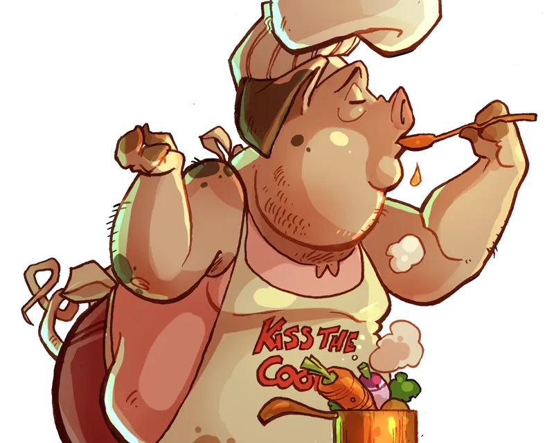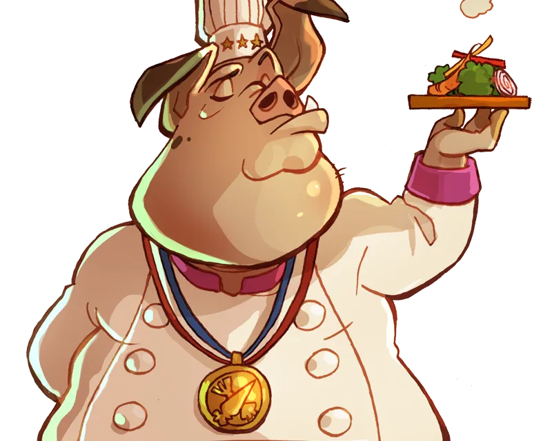 Преображение Gerald’a было не из легких! Когда начинаешь свою жизнь как поросенок, некоторые привычки сохраняются, даже если ты стал поваром... Но Gerald много, много, много работал и теперь он - настоящий Chef , несмотря на то, что об этом говорит Maurice...