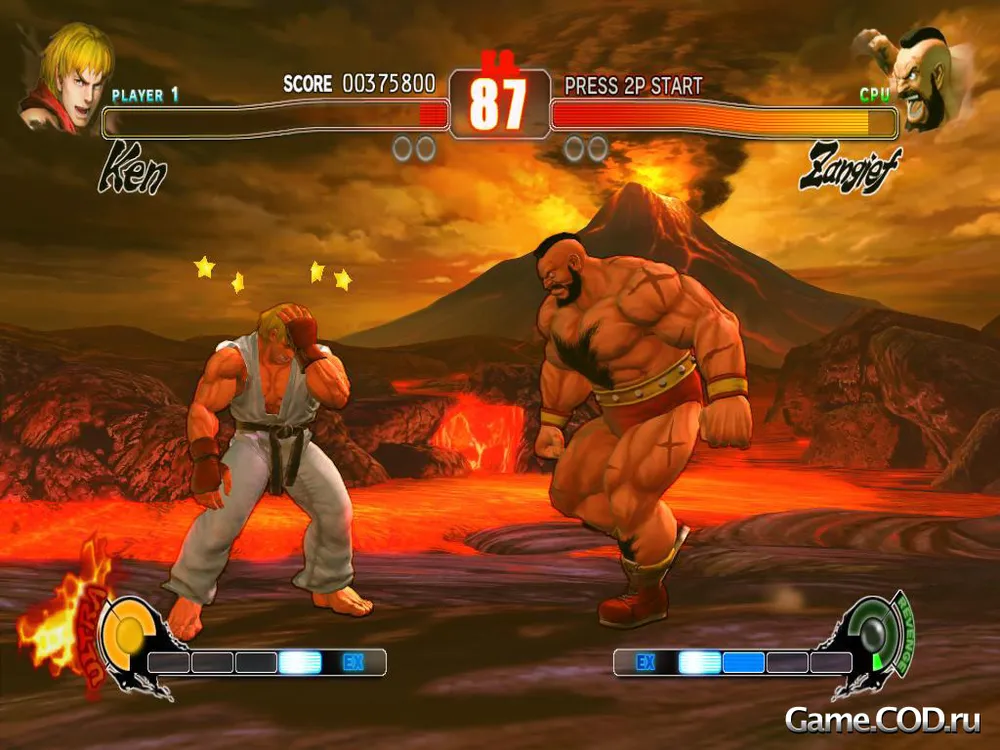 По качеству не отстают и спецэффекты, от обилия которых на экране порой захватывает дух. «Street Fighter 4» не претендует на звание сколько-нибудь серьезного файтинга со скрупулезно проработанным балансом и реалистичными ударами, а потому разработчики не ограничивали себя в превращении обычного поединка в феерическое представление. Огонь, электричество, сгустки энергии – практически у каждого персонажа есть чем повкуснее «угостить» противника, ну а апофеозом, как и положено, являются ультра-комбо удары. Они весьма сложны в исполнении и требуют накопления определенного количества энергии, зато результат окупает все с лихвой – такой удачно проведенный удар способен снять до половины линейки жизни врага, а о том, что в эти моменты твориться на экране и говорить не стоит – локальный конец света.
