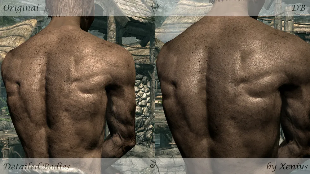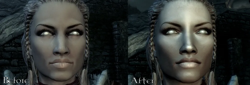 Одним из первых модов, на которые я обратил внимание, был No More Blocky Faces от пользователя Skyrim Nexus с ником Xenius. Вот этот самый мод и убирал "квадратность" и добавлял детализации текстурам лиц персонажей Skyrim. В последствии Xenius выпустил еще несколько модов (Detailed Faces, Detailed Bodies, Detailed Lips, No More Blocky Faces, High Quality Eyes, High Resolution Scars, ...) и, в конце концов, объединил все свои работы в один пак Xenius Character Enhancemen.