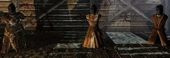 Три безвольные жертвы под прицелом моей трусости. Сердце бешено колотилось, его биение отдавалось где-то в горле, в глазах рябило, в ушах стоял шум. Старуха что-то орала про детей и требовала ее немедленно отпустить, мужчина оправдывался в своих вылазках и загубленных в налетах жизнях, каджит держался нагло и угрожал своими людьми. Теряя над собой контроль, уже дойдя до предела от надвигающегося ужаса, я сжал вспотевшей рукой кинжал и с силой вонзил его в каджита. Коротко вскрикнув, каджит упал ничком на пол и затих. Старуха начала вопить еще громче и неразборчивее, мужчина вжался головой в пол и зарыдал, моля пощадить его. Голова опустела. Исчез шум, сердце с размеренностью песочных часов отсчитывало удары. Я ощутил жуткую тошноту. Оглушив обе жертвы, убийца выразила восхищение моей «работой» и велела мне идти за ней. Всю дорогу мы двигались молча. Я вяло шел навстречу неизвестному, осознавая три вещи – я боюсь умирать, я ненавижу убивать и мне теперь никогда не выпутаться.
