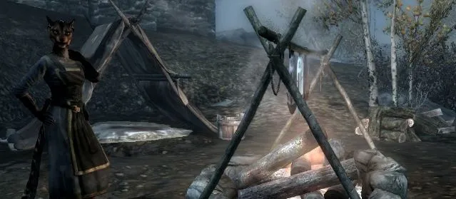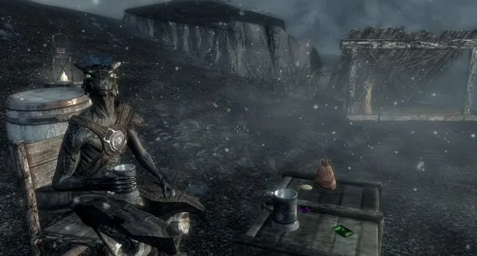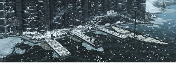 Спускаясь к реке за водой, я заметил аргониан, работающих в доках, и заинтересовался этим. Насколько мне было известно, каджитов и аргониан в Скайриме не жаловали пропуском в города, а так хотелось посидеть у огня в таверне за кружкой согревающего меда. Вернувшись в лагерь, я прихватил с собой походный мешок и отправился в доки - в караванах таких временных сожителей особо не держат, если только с уходом временного не остается меньше четырех человек в группе.