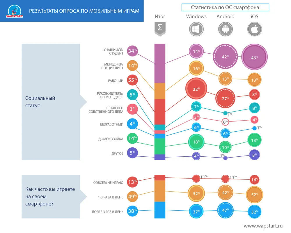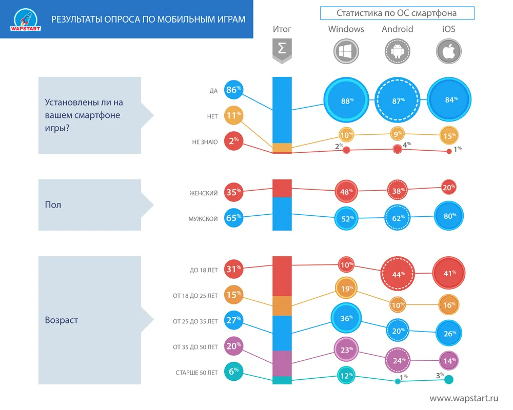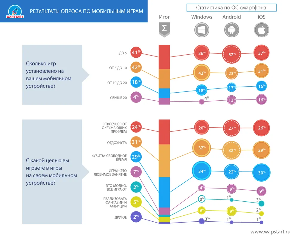 Компания WapStart, крупнейшая в России и СНГ сеть мобильной рекламы, представила результаты исследования отношения пользователей к мобильным играм. Опрос проводился в рекламной сети WapStart в июне 2014 года.
