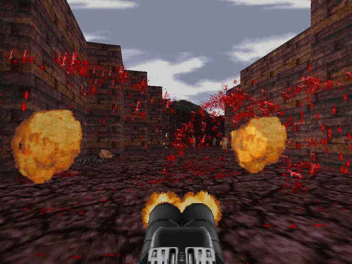 игра для PC, разработана Monolith Productions и издана GT Interactive. Blood вышел 31 мая 1997, впервые был использован движок от Кена Сильвермэна. Главная фишка Blood’a - изобилие графического насилия, из за которого игра и получила свое имя. Враги могут быть разбиты вдребезги, и куски мяса постоянно льются дождем вниз на игрока. Головы зомби могут быть отстрелены прочь, а затем могут быть использованы как футбольный мяч, извергая фонтаны крови. Враги кричат если их поджарить или ранить, звук несомненно добавляет атмосферности в Blood.