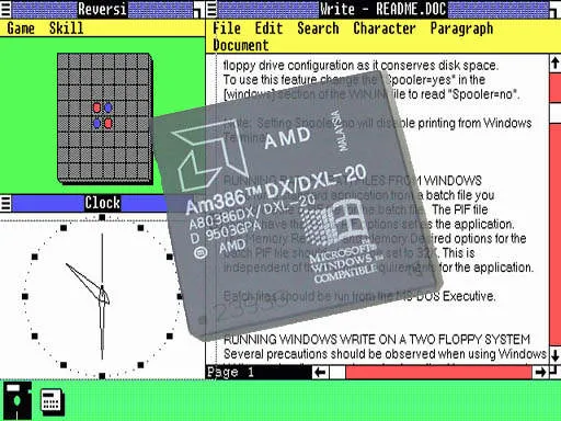 В 1991 году AMD выпустила свой 386 процессор. Подобно предшествующим моделям, этот процессор был идентичен версии Intel. AMD лицензировала производство клонов продуктов Intel вплоть до микрокода ("прошивки" CPU). Процессор отличается двумя интересными функциями. Первая: он быстрее, чем модель Intel - 40 МГц против топовой частоты 33 МГц у Intel - и он стал первым, получившим на упаковку логотип Windows Compatible.