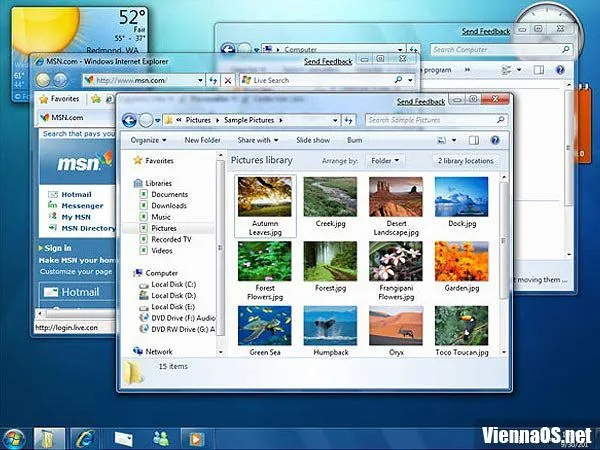 На Windows Vista рабочий стол трехмерный (частично). Через многие годы развития Microsoft предлагает улучшенную концепцию управления и новые функции, такие как Sidebar и Flip3D.