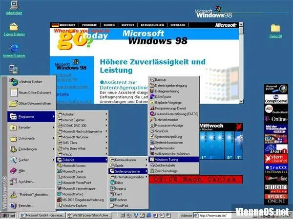 Новым в Windows 98 было: полная поддержка USB, улучшенные функции для Интернета и способность читать DVD.