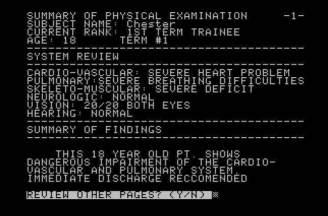 На протяжении жизни персонажа чередовались четырёхлетние тренировочные циклы, в перерывах между которыми игрок мог выбрать один из пяти сценариев. Сценарий «Исследование» (Explore) предоставлял возможность обыскивать планеты в поиске питания и полезных ископаемых, сценарий «Защита» (Defend) — оборонять дальнюю колонию от инопланетного вторжения. Сценарий «Первая кровь» (First Bloоd) сталкивал игрока в битве с неизвестным противником, а «Торговец» (Trader) давал в распоряжение звездолёт, окупать который нужно было посредством перевозки пассажиров и грузов. Наконец, сценарий «Крупные финансовые операции» (High Finance) позволял нажить несметные богатства на галактическом фондовом рынке.